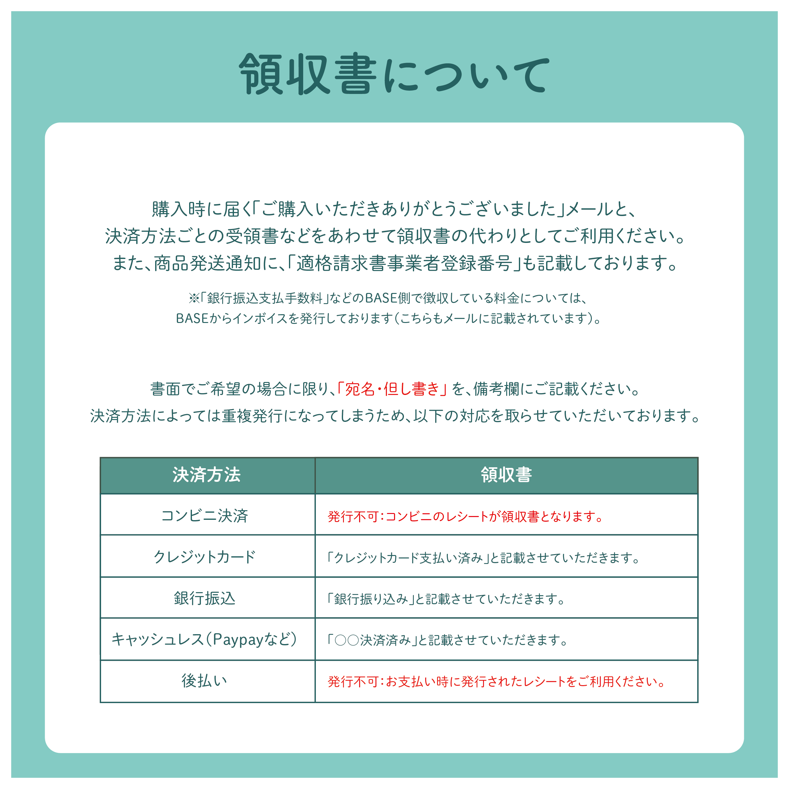 領収書希望の旨と「宛名」&「但し書き」を、ご購入時に備考欄にご記載ください。