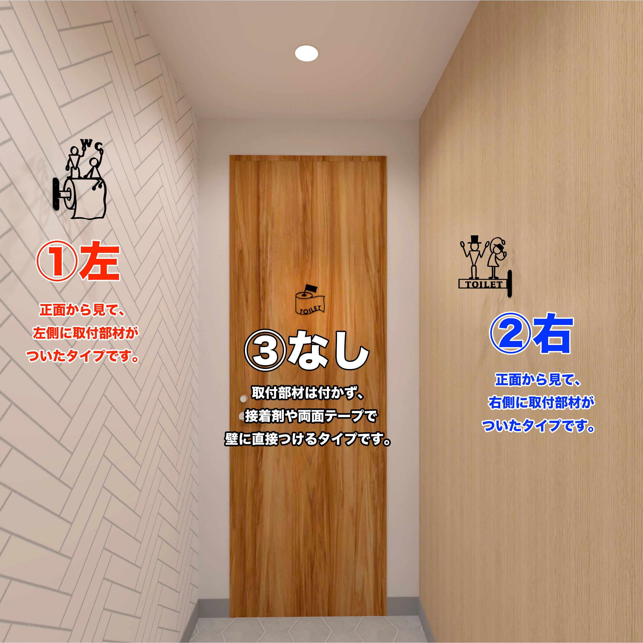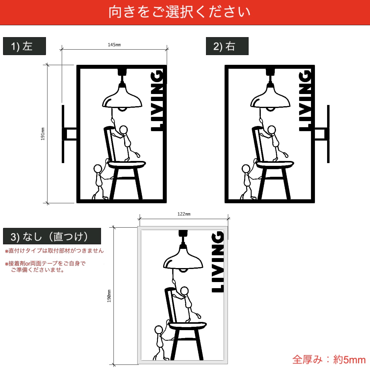 ・直付けタイプ:接着剤や両面テープで取り付けください。